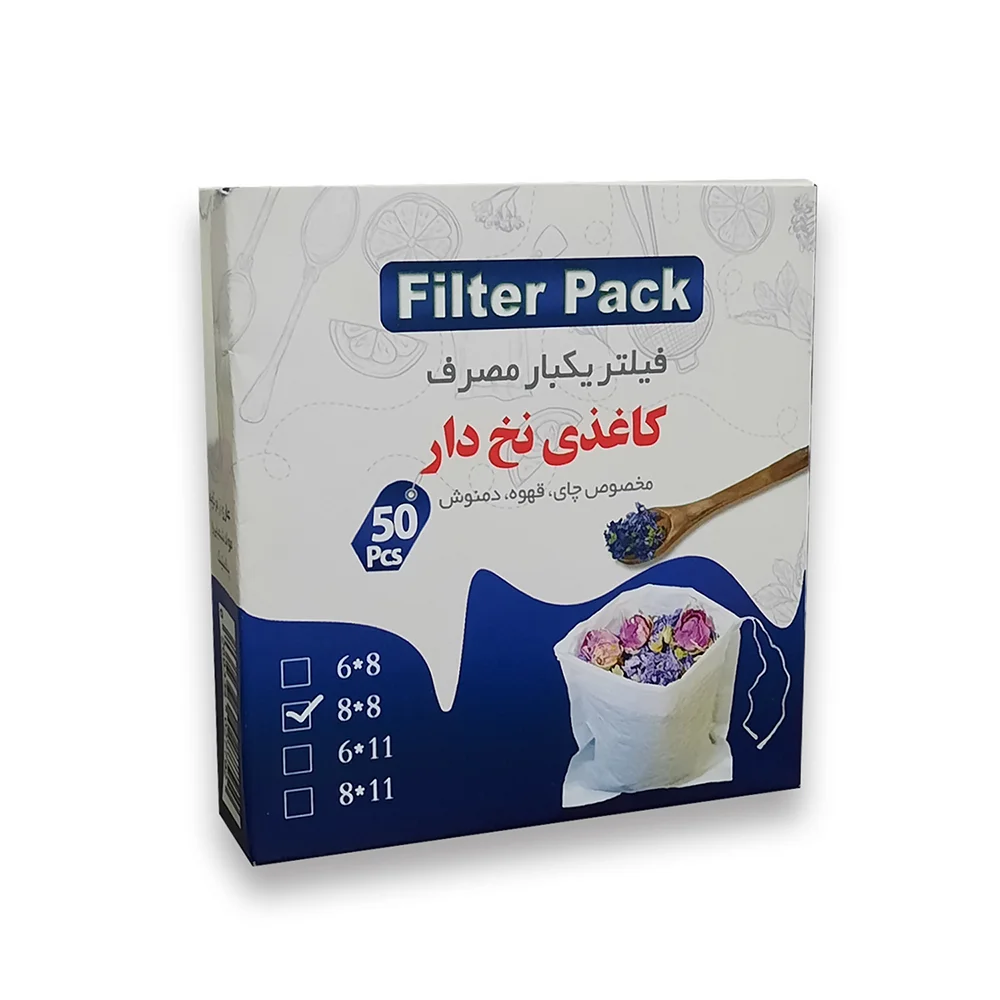 فیلتر چای کاغذی نخ دار ۵۰ عددی سایز ۸*۸